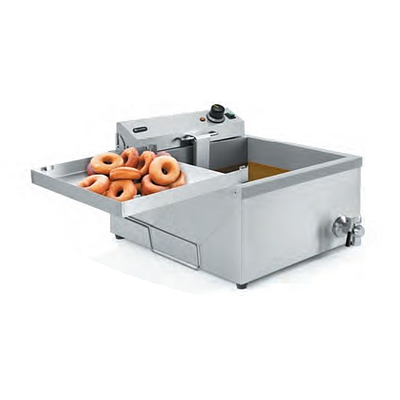 Idéal pour frire des beignets, merveilles et d’autres pâtisseries frits. Fait complétement en inox, livré avec deux paniers à frire (354x383 mm)avec manche isolée, un protection de chaleur et couvercle qui peut également servir comme un bac-égouttoir. Facile à utiliser et nettoyer. Convient pour une utilisation intensive - bon rendement. Équipé avec une large cuve à l’huile soudé (400x400x(H)160 mm avec une capacité maximum de 12 L. La cuve est équipé d’un robinet de vidange et les indications de niveau de l’huile min/max, ainsi qu’une zone froide qui permets de prolonger le temps d’utilisation de l’huile. Élément chauffant amovible qui s’arrête automatiquement lorsqu’il est enlevé de l’appareil et protection contre la surchauffe. Température réglable de 50° à 190°C. Un voyant pour indiquer si l’élément chauffant est en fonctionnement. Avec pieds en caoutchouc antidérapants.